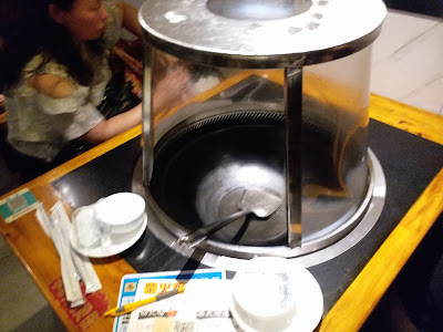 在枱前即煮即食,有個罩防止油煙週圍彈,設計唔錯